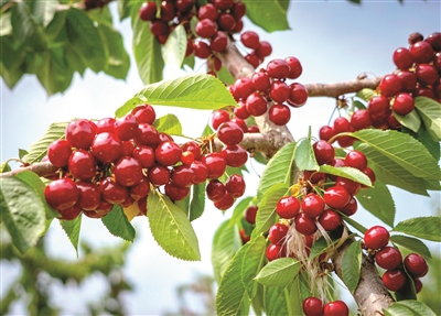 “我们几个好友相约来种植基地采摘樱桃,不仅可以拥抱大自然、欣赏美景,还能挑选新鲜的樱桃。”“我每年都来,是这里的常客了。采摘时我看到樱桃树上硕果累累,心情都变得特别好。”“这儿的樱桃味道很好,让人吃了忘不了。”……樱桃种植基地里,游客你一言我一语地说着。