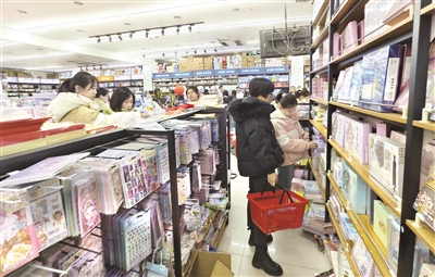 新学期开启,“开学经济”升温。许多家长带孩子前往书店或商城选购图书和学习用品,为新学期做准备。图为市民正在滨河商贸城选购文具。晋向华摄