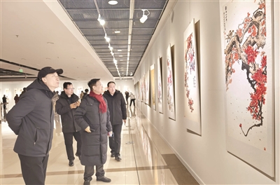 本报讯 记者范佳钰 晋向华摄影报道 2月23日,“清风沐桃李 梅花赞盛世”阳泉师专骞桂林副教授百梅画展在市展览馆开展。