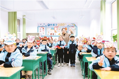| 2月27日,我市各小学、幼儿园迎来开学日,师生们相聚校园,领取新课本,开始新的学习旅程。图为上站小学一(8)班“开学第一课”的课堂上,老师与学生们展示春节期间创作的手工作品。 张泽慧摄 |