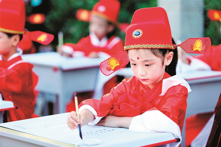 7月20日,城区大阳泉幼儿园举办“状元及第 金榜题名”毕业典礼,用传统礼仪的形式祝福幼儿开启新的学习生涯。张哲远摄