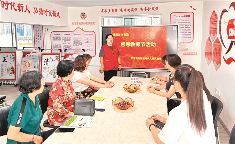 9月6日,城区北大街街道西营盘社区新时代文明实践站开展“退休不褪色 奉献在社区”教师节活动。