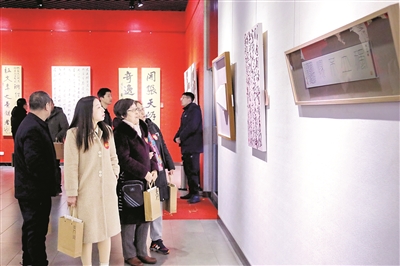 3月3日,“三人行”郑恩田、庞宏亮、孙瑞宾书法作品展在市展览馆开幕。本次展览共展出书法作品60余幅,书体涵盖真草隶篆行,同时采用多幅书法作品组合的形式进行展示,让观众更深刻地体悟书法之美。张泽慧摄