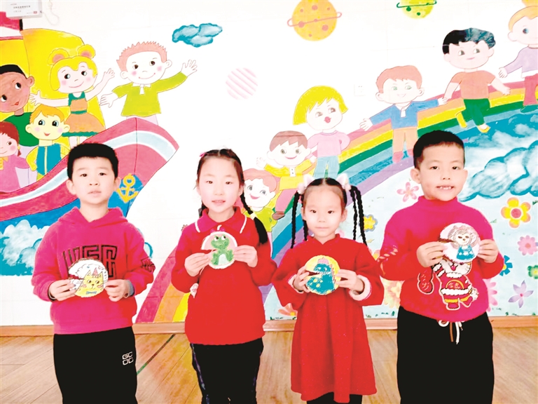 近日,三都幼儿园组织大班幼儿开展了“彩绘木头画”主题活动。孩子们发挥想象力,在废旧木头上用马克笔创作出自己喜欢的图案。图为幼儿展示自己的手绘木头画。段素红摄