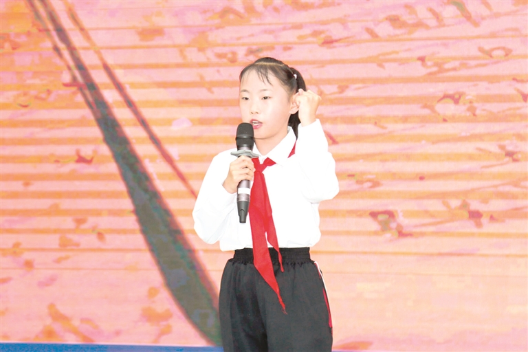 在学生读书分享环节,巨兴小学一(2)班的史宇涵虽然年龄小,但她绘声绘色、完整地讲述了《神奇的小种子》。三(3)班王珮杉为大家推介了《国之脊梁》,这本书让她了解了40位中国院士、100多个动人的故事。六(1)班5位学生喜欢读《少儿百科全书》,并动手做实验,为大家成功展示了“喷泉戏球”,博得与会人员阵阵掌声。六(五)班学生全程用英语分享《狼来了》的故事,告诉大家做人要诚实,不能以说谎去愚弄他人,否则会自食其果。