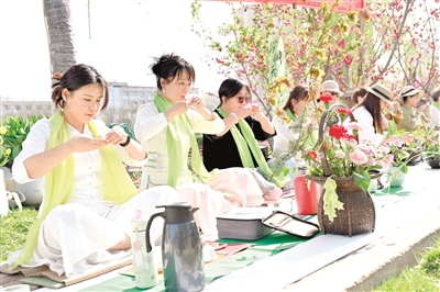 为弘扬中华传统茶文化,促进茶艺与花艺的融合交流,4月19日,山西花艺联盟、汾阳无我茶会及阳泉市插花花艺协会,共同在桃河公园举办了茶会活动。活动中,茶艺师为大家讲解了茶习俗及茶道礼仪,花艺师现场创作谷雨主题花艺作品,大家以茶会友,品茗赏花,共享自然与人文之美。 晋向华摄