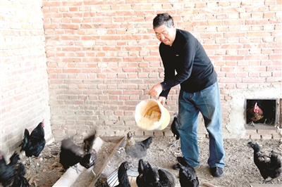 每天下午五六点,是巩先贵雷打不动的收蛋时间。他通常会提着塑料筐,小心翼翼地捡拾着一枚枚青壳乌鸡蛋。塑料筐渐渐被填满,沉甸甸的不仅是鸡蛋,更是他对美好生活的期盼。(侯大旺 杨园园)