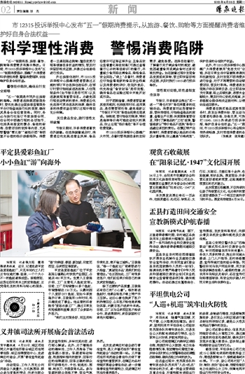 市12315投诉举报中心发布“五一”假期消费提示,从旅游、餐饮、购物等方面提醒消费者维护好自身合法权益——~~~