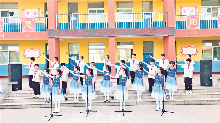 紧接着,阅读成果展示活动精彩上演。集体诵读环节,低年级学生用稚嫩童声朗诵《中华少年》《雷锋叔叔,你在哪里?》……琅琅书声传递着传统美德;高年级学生慷慨激昂地吟诵《少年中国说》《读中国》,展现出孩子们蓬勃向上的精神风貌。亲子诵读环节,家长与孩子携手登台,共同朗诵《春江花月夜》等经典篇章……现场气氛热烈,掌声不断。