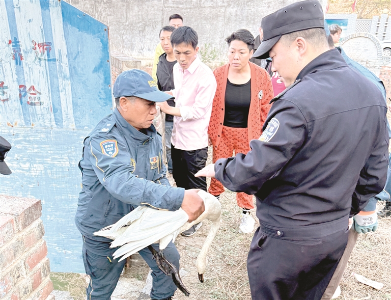 本报讯 记者吴琦 张泽慧摄影报道 4月24日,阳泉蓝天救援队前往平定县岔口乡马上固村,救助落单天鹅。