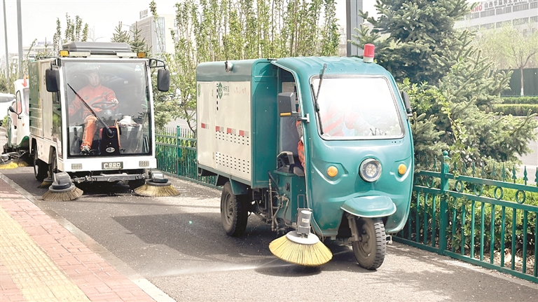 日前,阳泉高新技术产业开发区中环洁城市环境服务有限公司利用雾炮车、小型高压冲洗车、小型机械化清扫车和小型微扫车在辖区各路段开展联合作业,减少“飞絮”对市民出行的影响。霍思衡摄