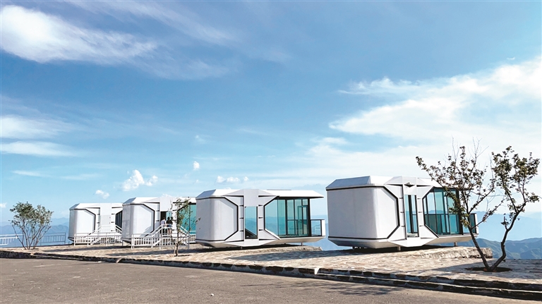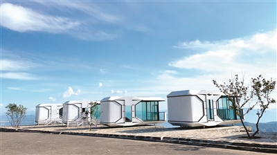 沿着骆驼道一路向北,就到了牛道岭附近。这里有一处悬崖,在悬崖边上,建有一间星空酒店。9个用于住宿的房间采用太空舱造型,住在这里,白天能将群山尽收眼底,夜晚能仰望满天星辰。