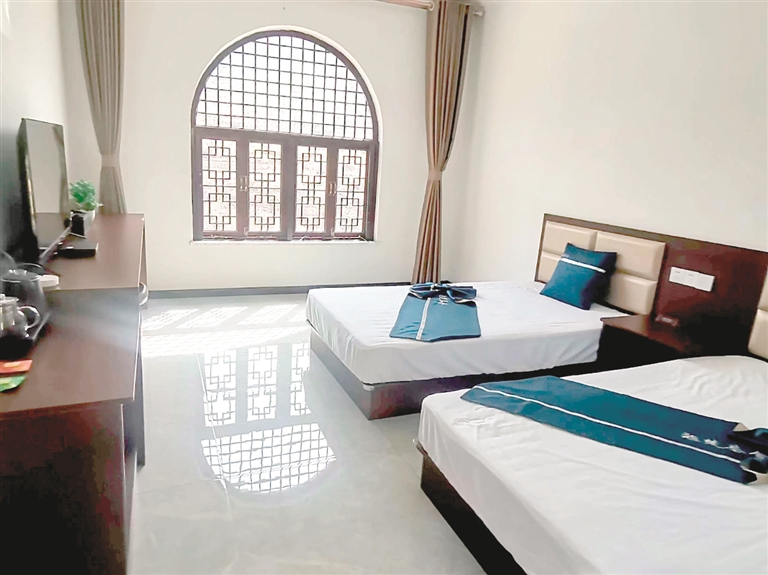 王炭咀村村内草木葱茏,空气清新。游客可漫步于绿树成荫的乡村小道,在孔雀观赏园游玩,孩童则能在户外拓展乐园攀爬跳跃,于绿荫间释放活力。如果在“五一”假期入住,还有机会在村里观看精彩的文艺表演。(侯 节)