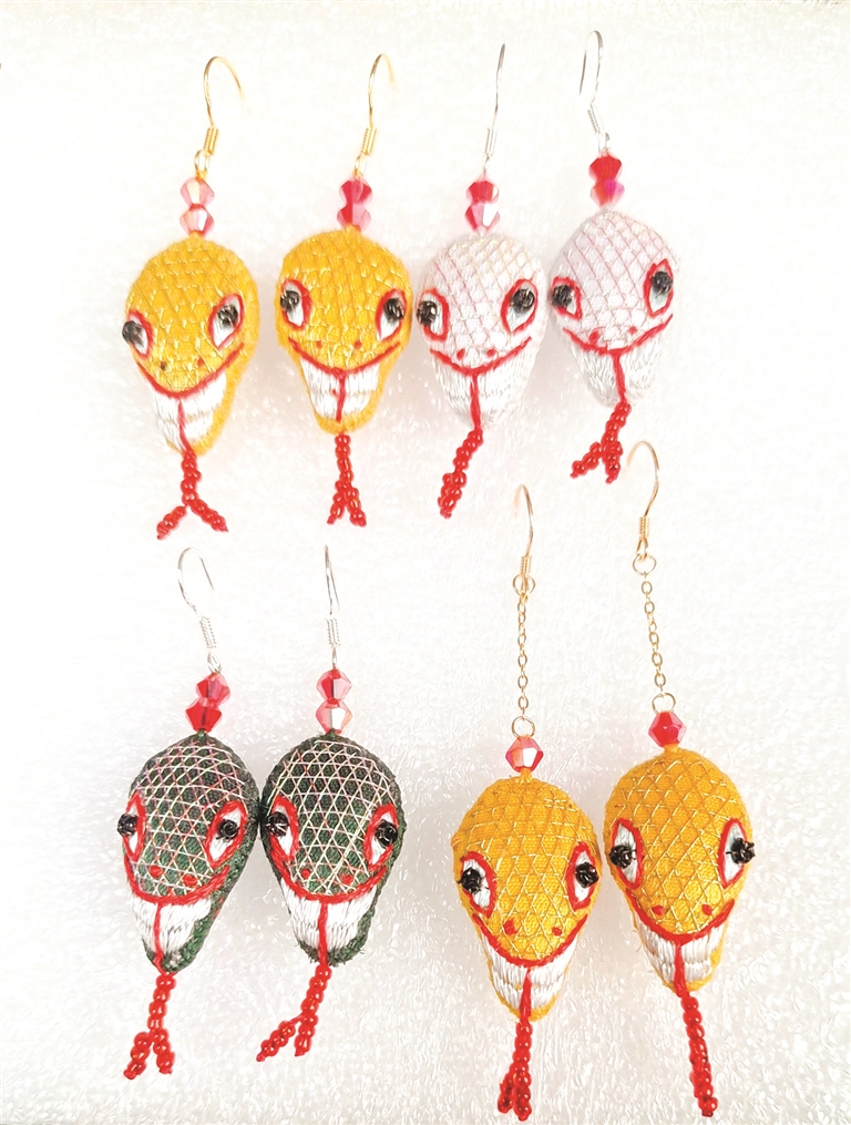 《刺绣蛇耳环》