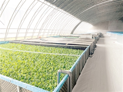 鱼菜共生是一种新型的复合耕作体系,近年来,我市一些村子勇于“尝鲜”。甘泉井村于2023年引进了鱼菜共生项目。“鱼儿在鱼池中生长,养殖尾水经过过滤后,去除鱼粪留下营养物质,用于种菜很合适;蔬菜种植的尾水经过消杀后流回鱼池,用于养鱼不浪费。这个项目实现了‘一水双收’。”付芸秀解释鱼菜共生的原理。
