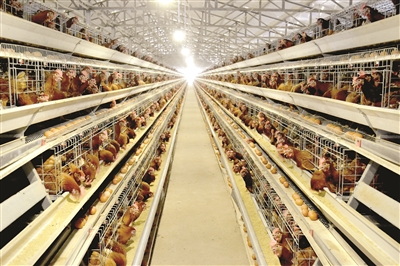 种植产业延链条,养殖产业大步走。尝到了调整农业产业结构的甜头,甘泉井村人充分调研市场行情后,成立了平定县裕盛养殖有限公司,积极发展蛋鸡养殖。6月10日,蛋鸡养殖车间里,10万余只蛋鸡在各自的“小屋”里啄食。“蛋鸡养殖从投喂、控温到清粪、拾蛋,都是自动化操作。公司生产的鸡蛋是富硒鸡蛋,常常供不应求。去年,我们又建了一栋鸡舍,现在已经投用。”付芸秀说。