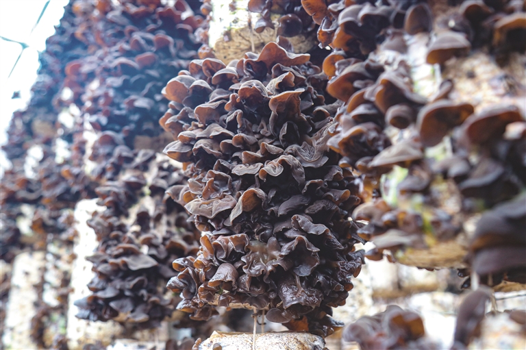 连日来,郊区西南舁乡大西庄村食用菌科研种植示范基地种植的70万棒黑木耳迎来首次大丰收,预计头茬产量可达3.5万公斤。村民们穿梭在菌棒间采收、搬运、装筐,现场一派繁忙景象。
