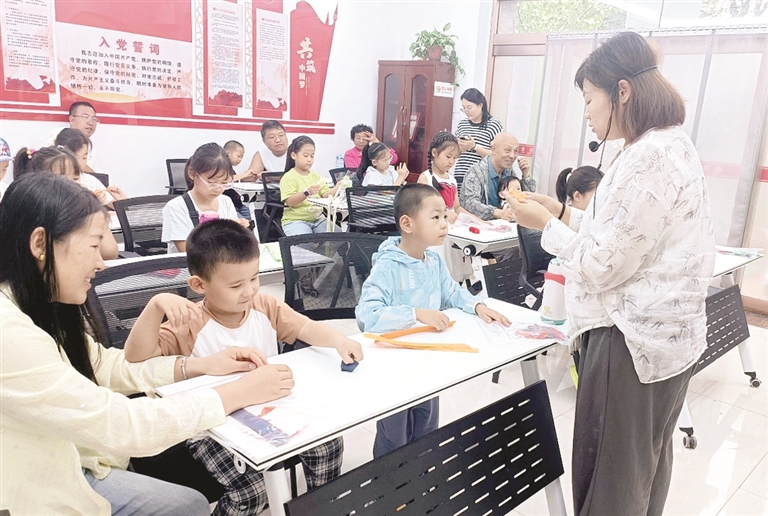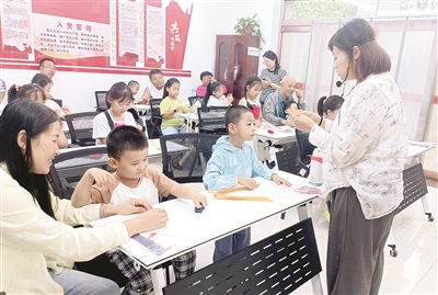 本报讯 记者吴琦摄影报道 8月27日,高新区大连街管理服务中心泉西社区联合悠贝亲子图书馆开展以“走进神奇糖果店 创作一只小小猪”为主题的绘本阅读活动,辖区14名儿童参加。