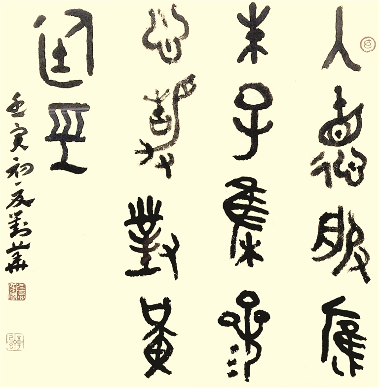 对联“入德服膺朱子集,参玄静对黄庭经”(大篆) |