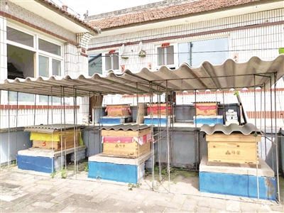 李艾畛家周边,荆条、洋槐花长势旺盛,蜜源很足。2023年,李艾畛听说养蜜蜂好处多还能致富,心里直痒痒,就在自家院里搭起了蜂架。李艾畛说:“刚开始没经验,就先试了几箱,摆在院墙边,每天都要去瞅好几回。好在土蜂适应力强,慢慢也就摸透了它们的习性,如今17箱蜂养得稳稳当当。”