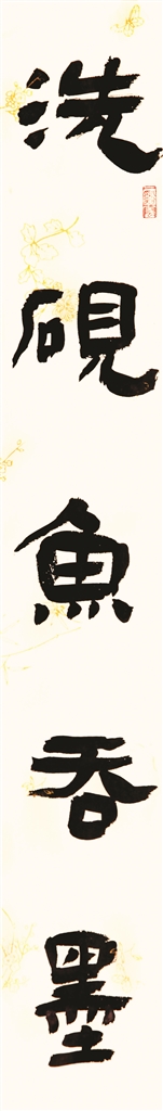 “洗砚鱼吞墨 烹茶鹤避烟”(隶书)