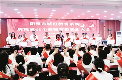 9月9日,城区教育系统举行“以教育家精神铸魂强师,谱写教育强国建设华章”教师节主题庆祝活动。活动中,通过教师献词、表彰年度先进集体和优秀个人、新入职教师宣誓等环节,让老师们度过了一个有意义的节日。刘 胜摄