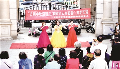 9月25日,高新区五渡管理服务中心宏苑社区联合阳泉市鑫泽馨园物业服务有限公司举办“月满中秋迎国庆 家国同心共团圆”文艺汇演。汇演中,陀螺鞭杆表演、快板《我在天安门前看升国旗》、合唱《桃花红杏花白》等节目精彩呈现,赢得居民阵阵掌声。此次文艺汇演传递了家国情怀,拉近了社区、物业与居民的距离。张哲远摄