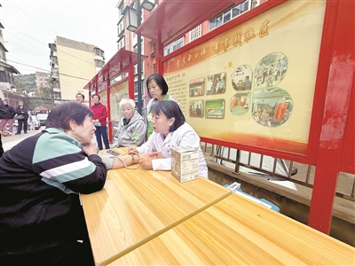 9月24日,阳煤集团总医院(桃西院区)联合矿区沙坪街道中沙坪社区开展义诊活动。医护人员为辖区居民免费测量血压、提供健康咨询等,切实提升社区居民的健康意识。贺 海摄