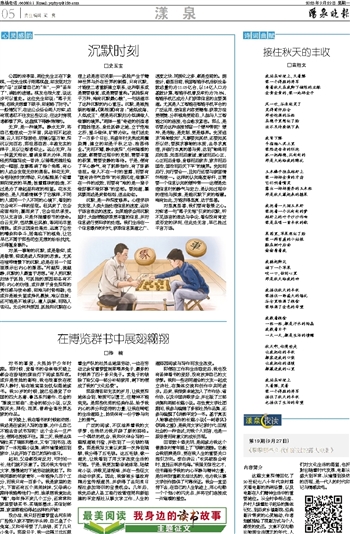 对某一事物的沉默,或是敬仰,或是敬畏,抑或是进入深刻的思索。尤其在喧哗情景下的沉默,总是在另一个层面展示出内心的激荡。“河越深,流越静,沉默的人最富于思想。”有人把沉默归结于孤独,可孤独的原因却各有不同:内心的彷徨,或许源于身负深深的责任感与使命感,却难与时势相融;也或许是被失望或挣扎裹挟,难以自拔;还可能是不被承认、遭人误解,而陷入苦闷。无论何种原因,孤独和沉默在心理上总是密切关联——孤独产生于精神世界与外在世界的割裂,只有沉默,才能使二者重新建立联系,这种联系或是需要修复,或是需要重构。“孤独纵有千万种,唯有沉默最心酸”,一句话道尽了这种沉默的内心重压。沉默,是被推崇的智慧。《菜根谭》有言:“地低成海,人低成王”,便是将沉默归为低调做人做事的境界。“两弹一星”奇迹的创造者们隐姓埋名,身处孤僻之地,立于危难之所,星斗做伴,旷野为依。他们送走了一万多个日出,将盛年时光熬成两鬓染霜,建立的却是千秋之功、浩荡伟业。“光而不耀,静水流深”,任何璀璨的成就,都需要过程中的克制,需要丰富的积累,需要安静的等待。于是,便有了平心静气,有了躬耕细作,有了卧薪尝胆。做人不在一时的显露,而要有“腹有诗书气自华”的长期沉淀;做事不在一件的成败,而要有“难的是一辈子做好事不做坏事”的坚韧。要知道,暴风骤雨总是来势汹汹,退去匆匆。