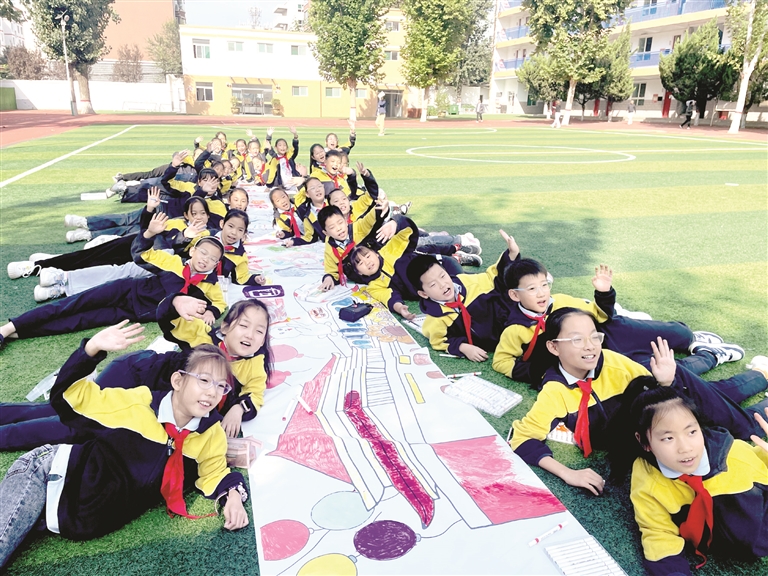 9月25日,城区南山路街道南山北路社区联合新华小学开展了“丹青绘盛世 长卷迎‘双节’”主题活动。学生们手持国庆、中秋主题相框开心留影,并齐心协力在空白长卷上绘出国旗、月亮、玉兔等图案,表达对家国平安、人月两团圆的美好祝愿。晋向华摄