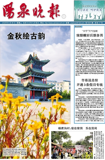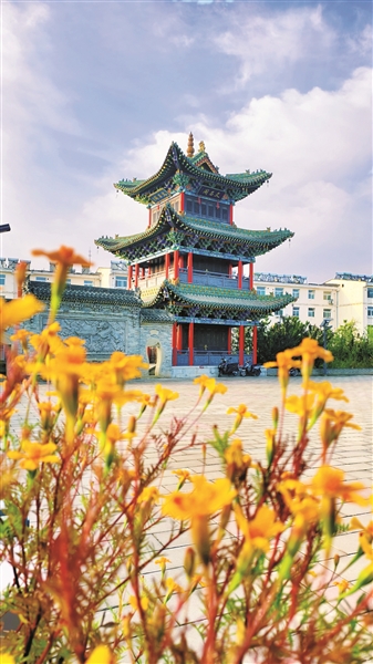 金秋时节,郊区荫营古镇的古建筑与金色花卉相映成趣,在蓝天白云的映衬下勾勒出一幅迷人的古镇秋韵图。图片拍摄于9月27日。晋向华摄